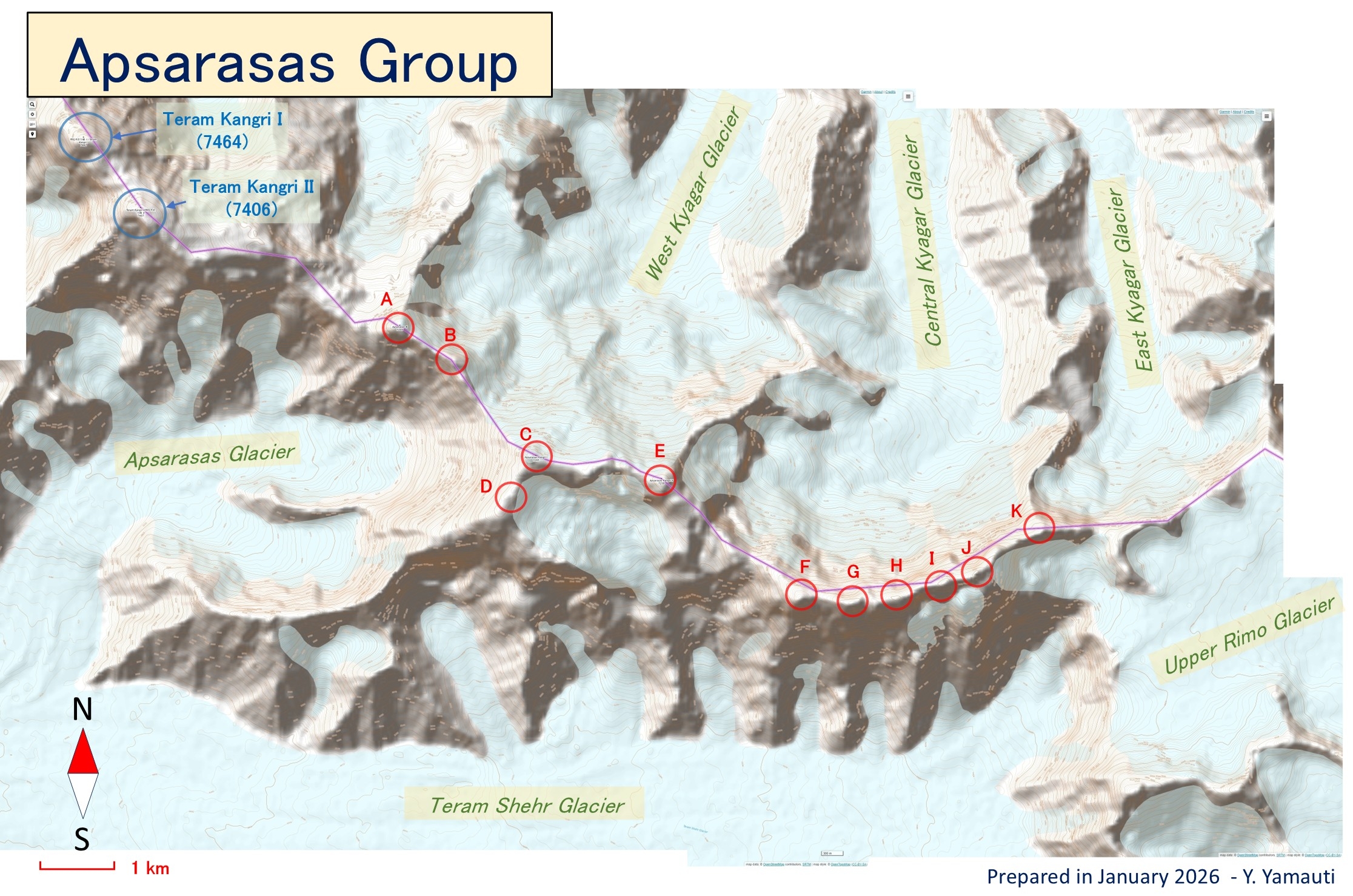 | I | アプサラサス III 主峰 [Apsarasas III Main] (Apsarasas III#67, Apsarasas Kangri III#31, Apsarasas Kangri III M#2 , 克亞吉尓峰#32,43, 阿普薩拉塞斯峰#44) |